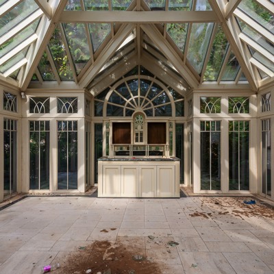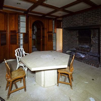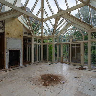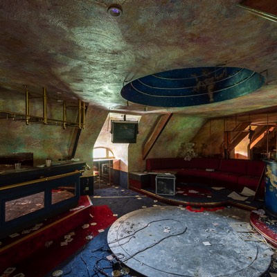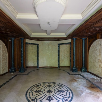 Das Obergeschoss schließlich offenbart die Partymeile der Villa. Ein großer Raum, ausgestattet mit Bar, Tischen, Sofas und Tanzfläche, mit fast schon kitschigen Deckenmalereien, die das Licht in allen Farben brechen. Hier oben hat man gefeiert, gelacht, getanzt. Der Geruch von Cannabis hängt noch in der Luft – die letzte Reisegruppe hat das Rauchverbot wohl großzügig ignoriert. Ein Ort, an dem die Zeit scheinbar stillsteht und doch so viel Leben hinterlassen hat.