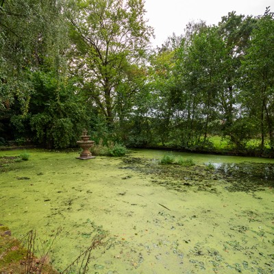 Ein Wintergarten mit Bar, ein Pool und eine prächtige Gartenanlage, deren Schönheit pittoresker kaum sein könnte, runden das Bild ab. Die Gärten wirken wie aus einem Katalog für Luxusanwesen – akkurat geschnittene Hecken, verspielte Wege und ein kleiner Teich, der das Sonnenlicht reflektiert.