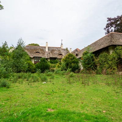 Das strohgedeckte Haus überrascht mit Räumen, die in ihrer Größe fast einschüchtern. Holzvertäfelungen treffen auf Marmor, in jedem Zimmer steht ein stattlicher Kamin, Zeuge vergangener Winterabende und üppiger Banketts. Hier mussten früher Tische für festliche Tafeln gestanden haben – Gäste in Abendgarderobe, Gespräche und Gelächter hallten durch diese Hallen.