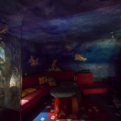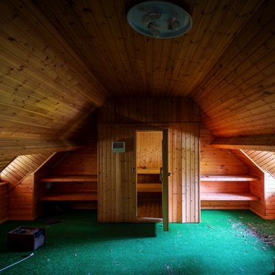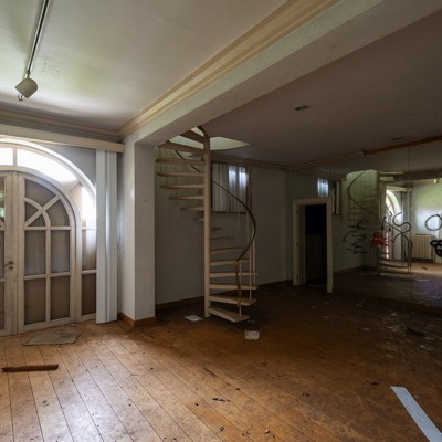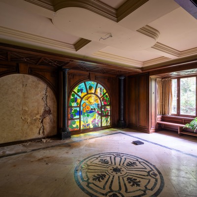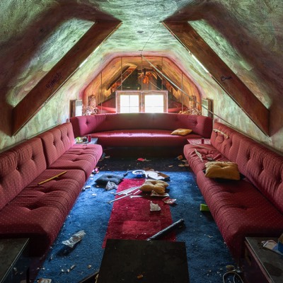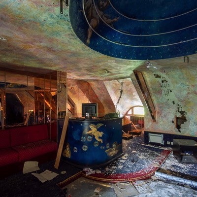 Das Obergeschoss schließlich offenbart die Partymeile der Villa. Ein großer Raum, ausgestattet mit Bar, Tischen, Sofas und Tanzfläche, mit fast schon kitschigen Deckenmalereien, die das Licht in allen Farben brechen. Hier oben hat man gefeiert, gelacht, getanzt. Der Geruch von Cannabis hängt noch in der Luft – die letzte Reisegruppe hat das Rauchverbot wohl großzügig ignoriert. Ein Ort, an dem die Zeit scheinbar stillsteht und doch so viel Leben hinterlassen hat.