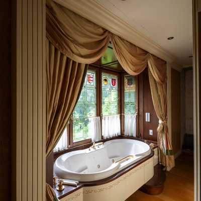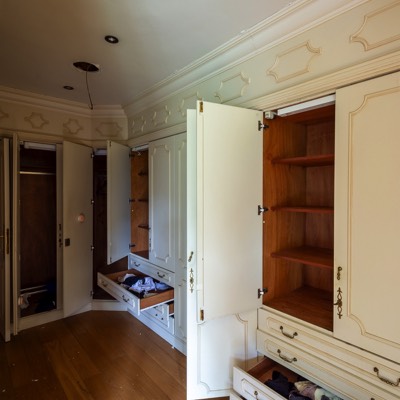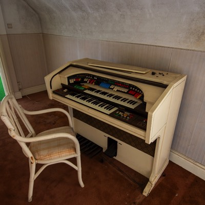 Im ersten Stock entdecke ich sechs Schlafzimmer, jedes ausgestattet mit einem verschwenderischen Maß an Luxus. Besonders beeindruckend: ein Raum, der zunächst wie ein begehbarer Kleiderschrank wirkt, sich aber als private Spa-Oase entpuppt: Badezimmer, Doppelwaschtische, WC, Sauna und sogar ein kleiner Fitnessraum – alles hier ist auf maximale Privatsphäre und Komfort ausgelegt. Etwas deplatziert empfinde ich die GEM H7000-Orgel, die lustlos in einem Flur übrig geblieben ist. Ein absolut teures Modell aus den frühen 80er Jahren.